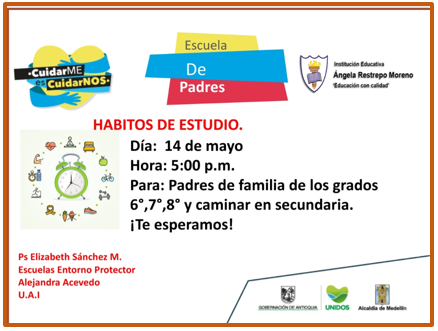 El próximo 14 de Mayo del 2020 se llevará a cabo en la institución la escuela de padres para los grados 6,7 y 8 y caminar en secundaria con la Psicóloga, a las 5:oopm para lo cual se deben tener en cuenta las siguientes Recomendaciones: