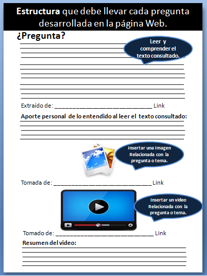 El siguiente vídeo visualiza los pasos a seguir para insertar: Texto, imágenes y vídeos en una página del sitio web teniendo en cuenta la estructura general que se deben tener en cuenta en el momento de desarrollar o responder cada pregunta de las actividades que se desarrollen durante las clases.